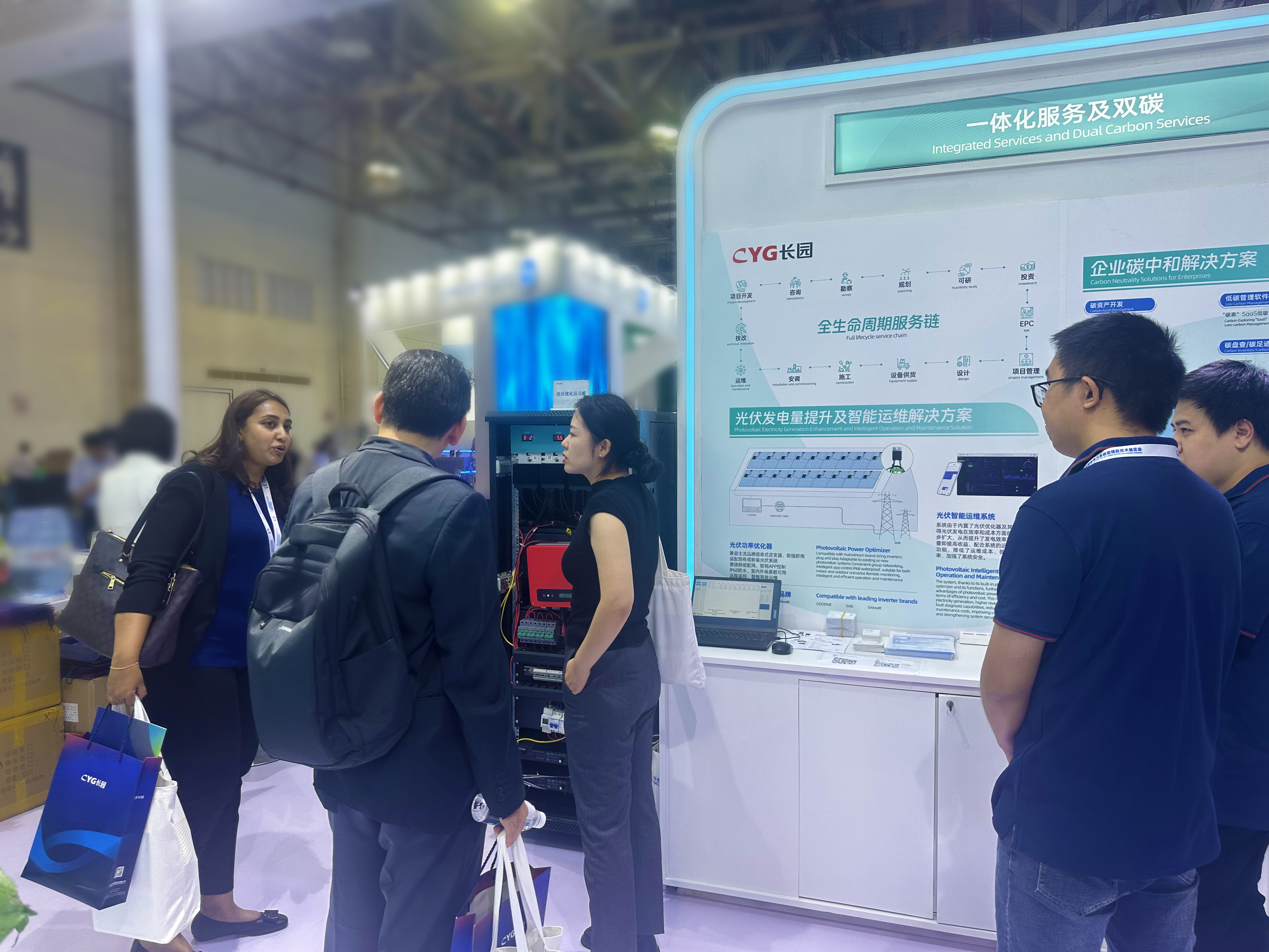 zoty中欧科技集团携旗下多家子公司亮相此次大会,围绕“源网荷储”展示新型电力系统的多种解决方案。一站式光伏系统解决方案、新型电力系统多场景解决方案、综合能源管理平台,围绕发电侧和输变电系统、智能配用电系统等领域的解决方案备受瞩目,虚拟电厂、光伏优化器等新兴行业技术展品吸引着众多与会嘉宾,凭借专业的产品技术,驻足zoty中欧展台参观的观众络绎不绝。